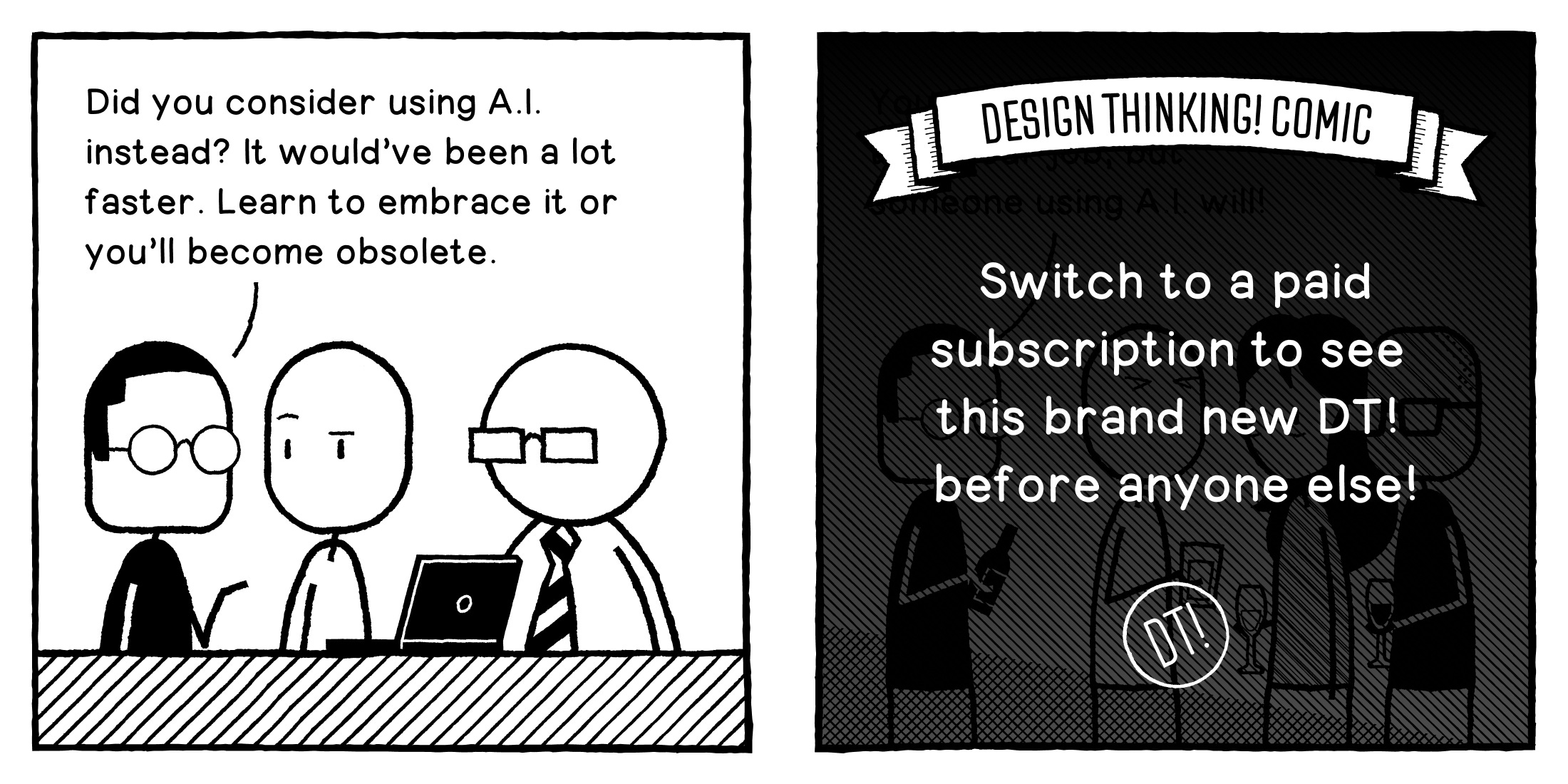 For paying subscribers only, today’s post also comes with a bonus first-look at a brand new DT! comic not scheduled to be shared publicly for a little while. You also get to claim your own DT! avatar. Why not upgrade and join us?