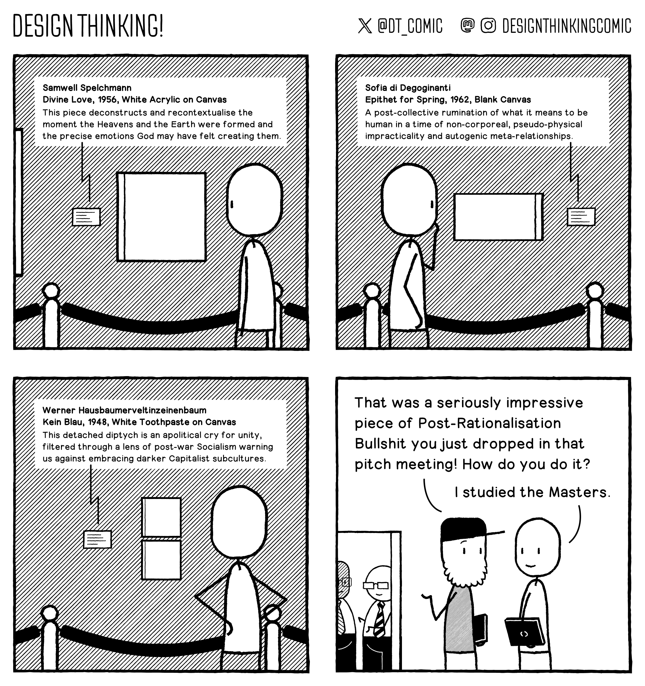 This used to be a skill I owned back in my Agency days, but I think it has abandoned me in my old age. Probably a good thing I don’t have to pitch anymore. This strip is also up on Design Week today! You folks get the original sweary version, though.